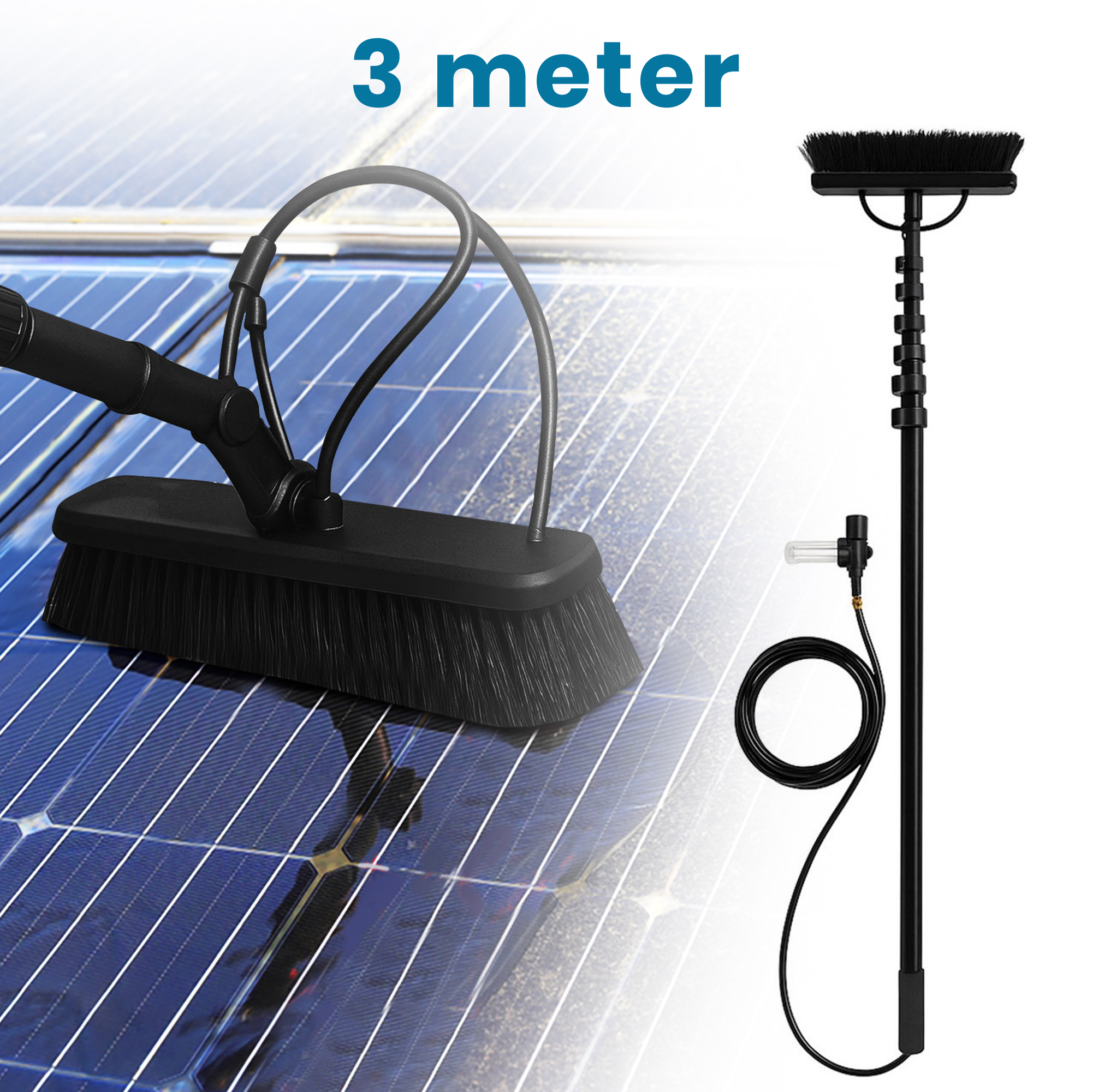 Duradis – 3-in-1 Telescopische Wasborstel met Waterdoorvoer – 3 Meter Bereik – Voor Zonnepanelen, Gevels en Dakpannen